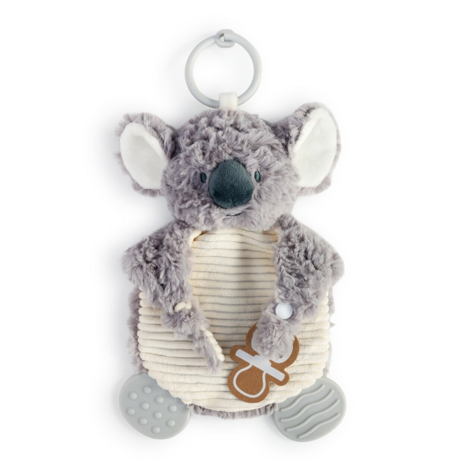 The lovely Koala Teether Buddy is a cute gifting option for any new parent or little one. This playful koala-shaped teething toy can attach to any stroller and features BPA-free silicone feet and crinkly mylar paper at the ears. This piece is part of the curated Teether Buddies nursery collection. This line will make teething much easier on babies and mums and dads, with an on-the-go design that can attach to any stroller or carrier with ease.