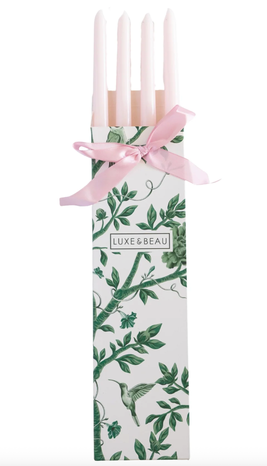 Illuminate your home with Luxe and Beau’s set of four elegant taper candles. Designed to bring warmth and sophistication to any setting, these timeless candles are perfect for dinner parties, festive gatherings, or creating a serene everyday ambiance.
