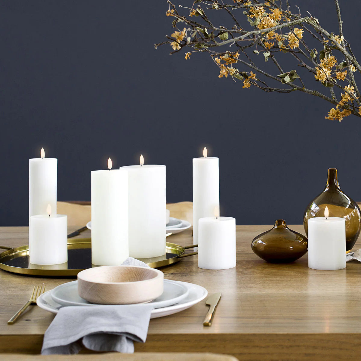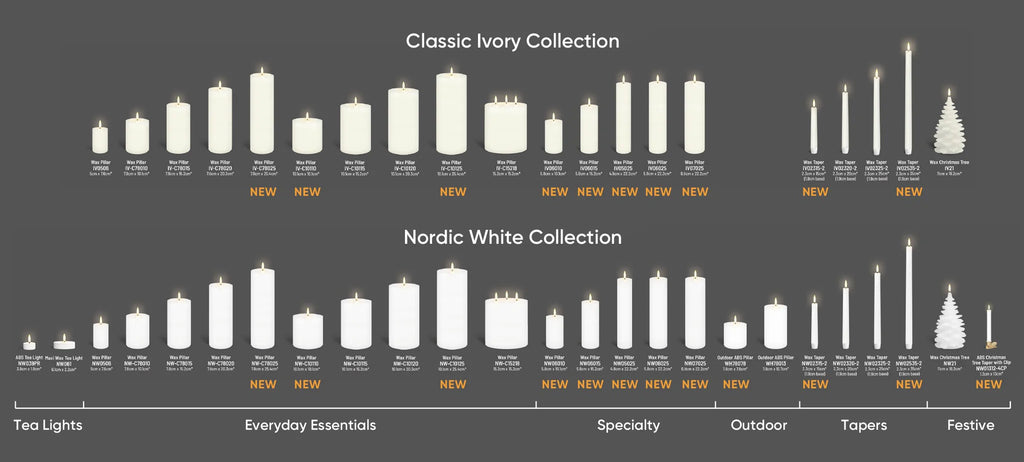 The Nordic White collection of flameless candles with 3D Wick design are handmade and hand poured from virgin paraffin wax. All remote enabled, each candle features our newest generation technology packed with options including multiple timer and brightness preferences.