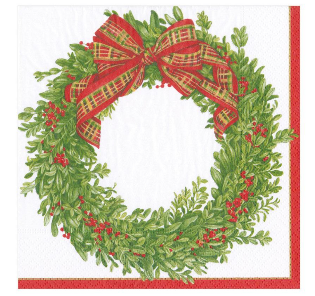 Boxwood & Berries Wreath - Christmas Lunch Napkins - 20 Pack