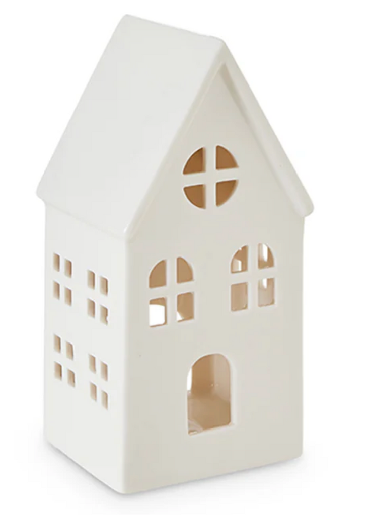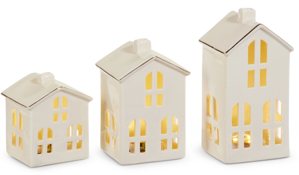 6.75" Ceramic House Lantern With Gold Trim Roof