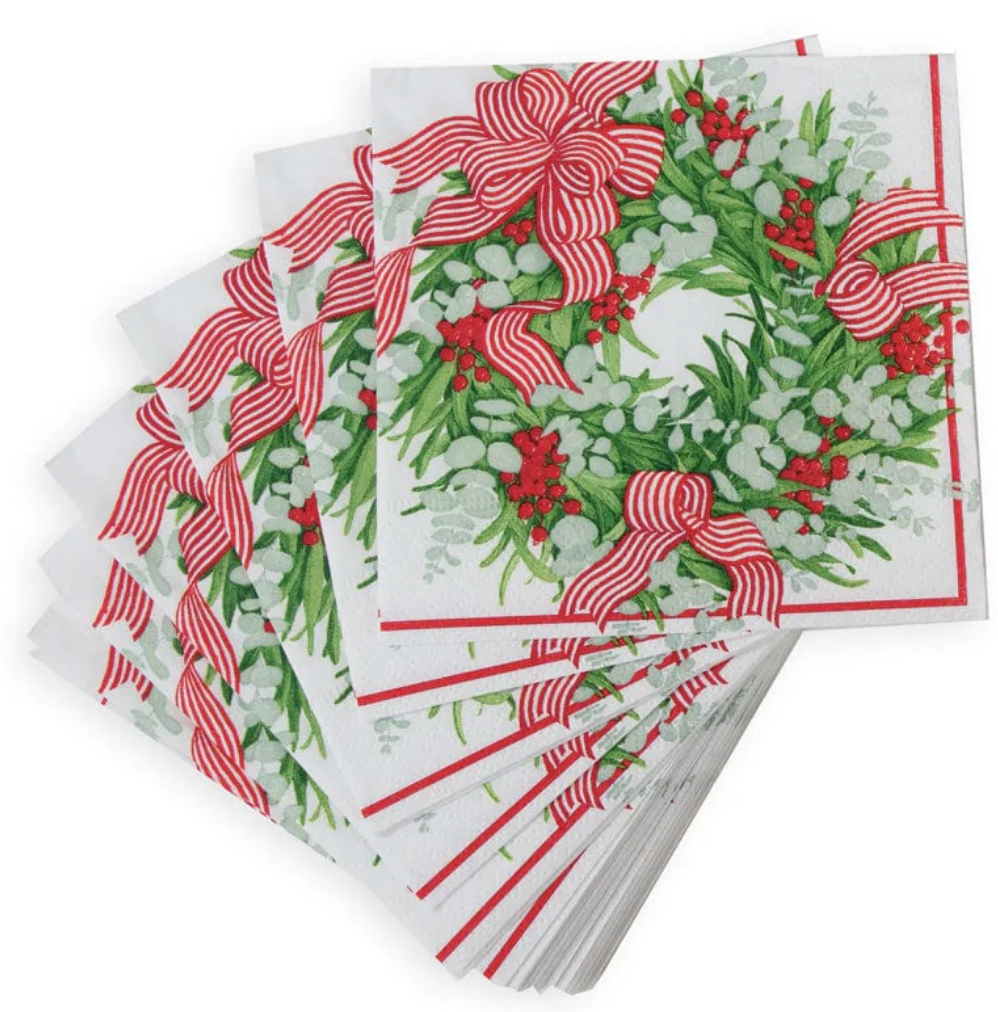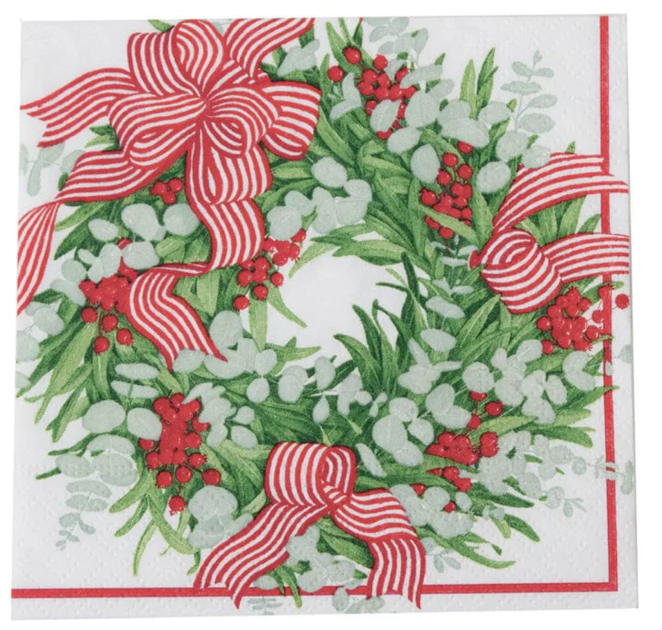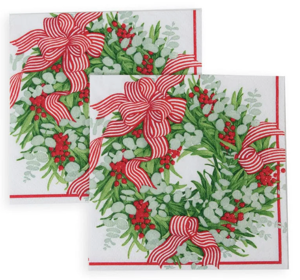Ribbon Stripe Wreath Cocktail Napkins - 20 Per Package